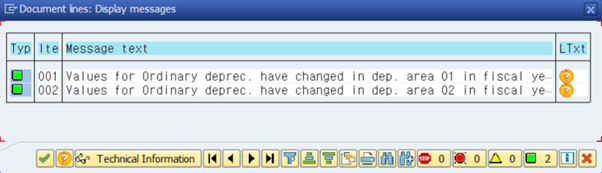 그런데 2022년 12월 감가상각(T-Code: AFAB)를 실행 후, 감가상각비가 1.00EUR 발생하는 것이 있길래 해당 자산을 자산탐색기(T-Code: AW01N)에서 조회해보니 아래와 같은 팝업창으로 메시지가 발생하고, 그 뒤로 잔존가액이 0이 되어 있는 자산을 보게된다.