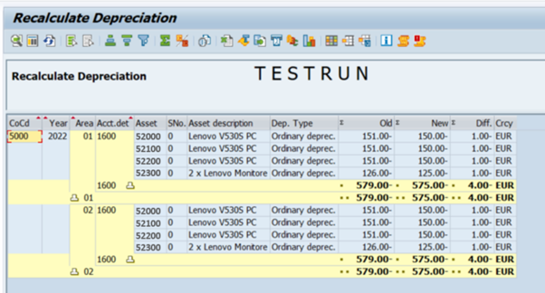 이러한 경우에는 T-Code: AFAR이라는 프로그램에서 감가상각 재계산을 통해 차이값을 원상복구 시킬 수 있다.