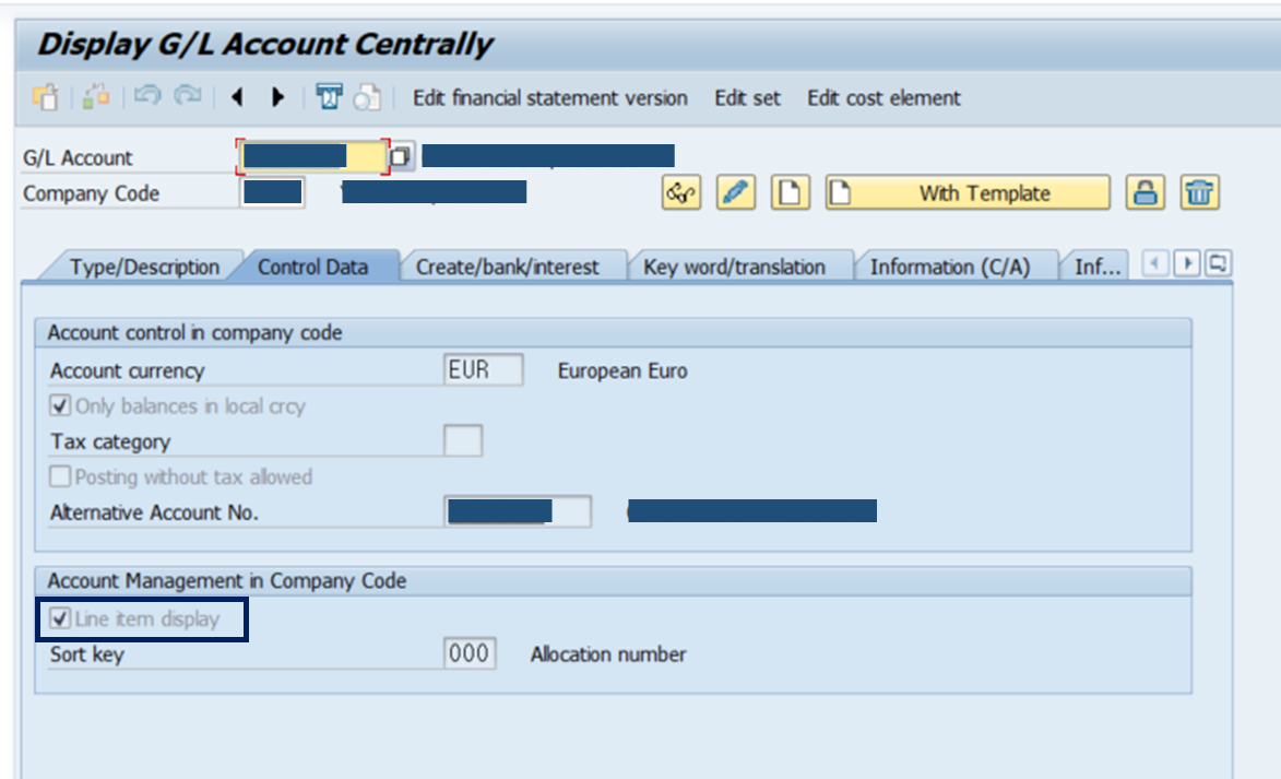1. T-CODE: FS00에서 마스터데이터 변경을 해준다.