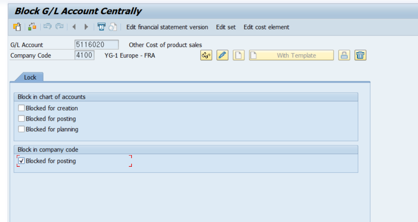 2. T-CODE: FS00에서 해당 GL계정에 대한 BLOCK 처리 해준다.