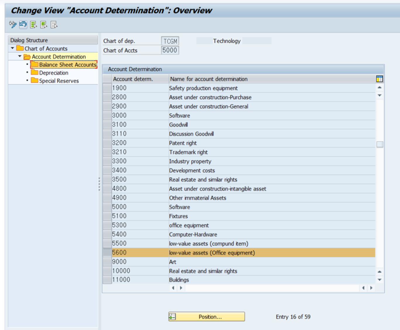 여기에서 Chart of Account 를 선택하고, 왼쪽의 "Account Determination"을 더블클릭한다.