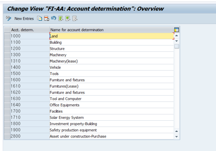SAP에서 고정자산 자산클래스의 계정 설정을 할 때, 중간에 계정결정(Account determination)이라는 중간 매개체(?)와 같은 필드가 필요하다.