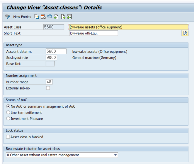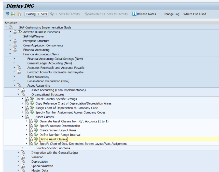 SPRO > Financial Accounting (New) > Asset Accounting > Organizational Structures > Asset Classes > Define Asset Classes