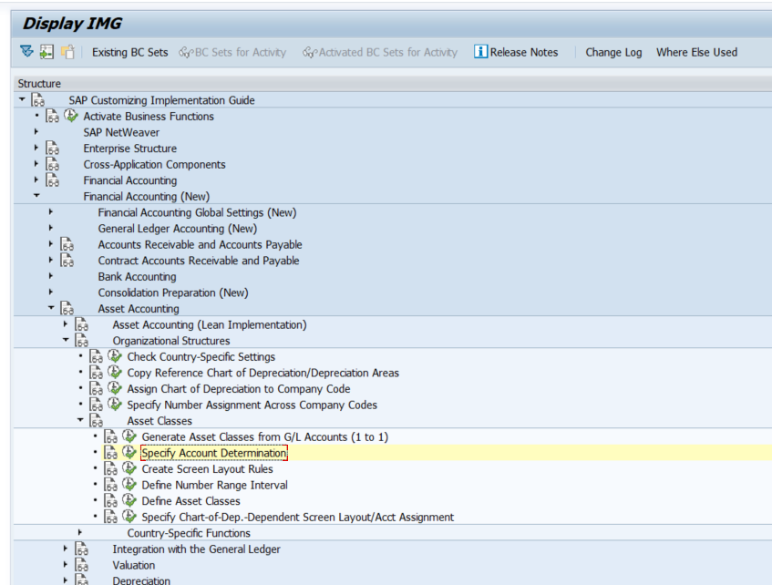 SPRO > Financial Accounting (New) > Asset Accounting > Organizational Structures > Asset Classes > Specify Account Determination